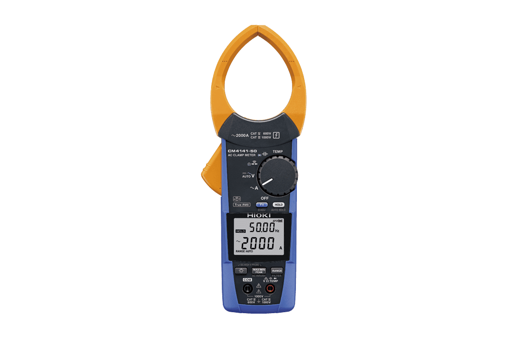 Hioki clamp on meters are best-in-class measuring devices incorporating Hioki’s expertise in current sensing technology. The CM4141-50 is a 2000 A AC True RMS clamp meter that features a uniquely designed slim jaw that lets you easily get into the narrow gaps between cables in crowded electrical distribution boxes without fear of damaging the cables or the clamp meter. The high current measurement capability makes it especially useful for industrial applications.
