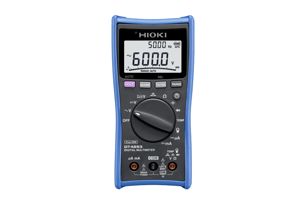The Hioki DT4200 Digital Multimeter Series consist of a complete lineup of 9 models ranging from professional to industrial to pocket meters, delivering a super fast response rate and safety features that take electrical testing to a higher level. The DT4253 is a digital multimeter designed specifically for HVAC testing, with ±0.5% DC V accuracy, temperature and clamp sensor testing, and wide 40 Hz to 1 kHz bandwidth.