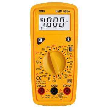 3 ¾ 3100 counts Analog Digital Multimeter measures Vac, Vdc, Adc (300mA), Ohm, Continuity, Diode, Negative Value indication, Auto/ Manual range, continuity, Temp. (PT100/PT1000), OL warning, Auto off, Cat III 1000V/IV 600V, Aac upto 300A via clamp on CT.